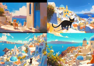 Cat strolling along the coastline of Nice --ar 16:9 --niji 6